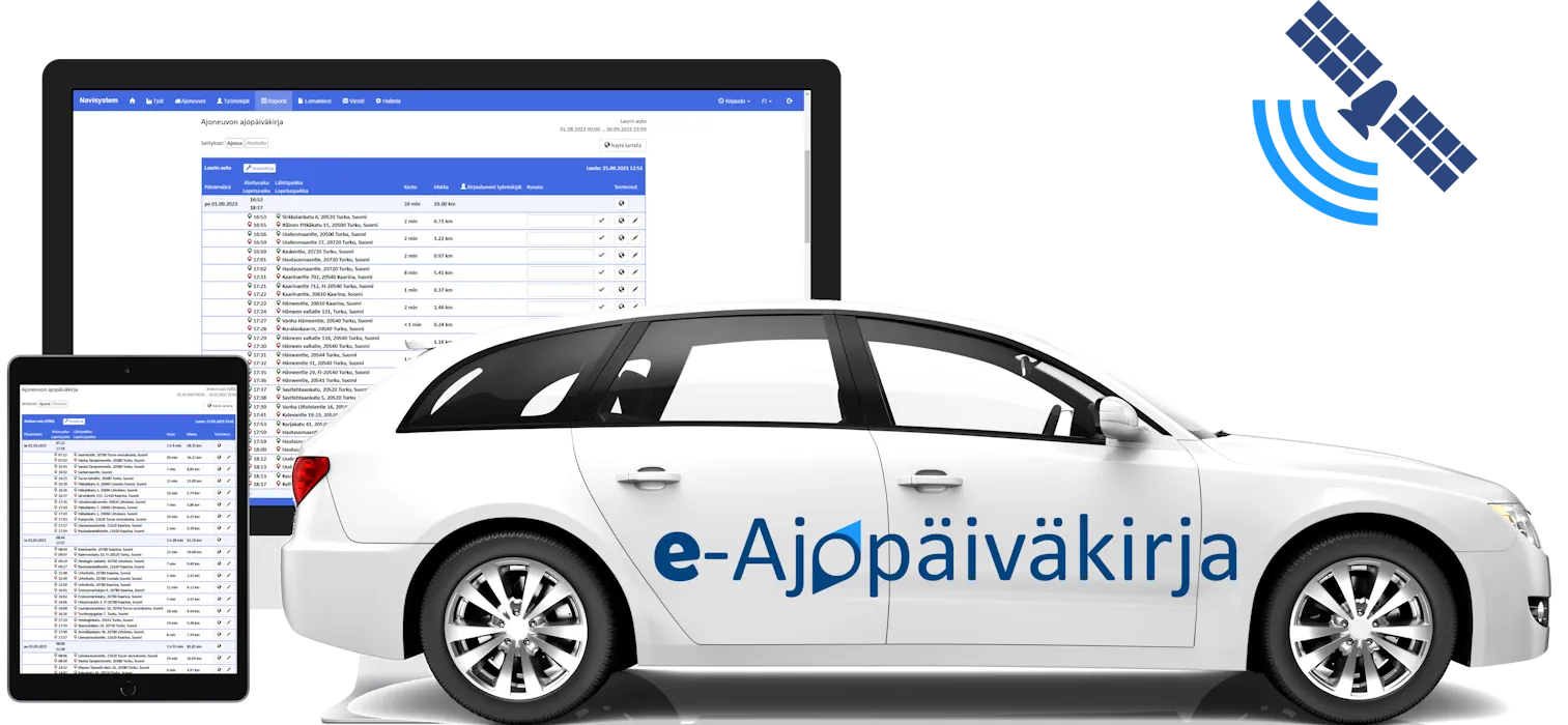 Autoon asennettava GPS-paikannin tallentaa ja lähettää kaikki ajot Navisystem-verkkopalveluun. Reaaliaikainen seuranta ja sähköiset ajopäiväkirjat.