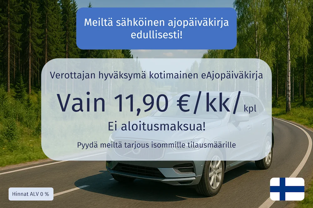 Verottajan hyväksymä kotimainen ajopäiväkirja nyt edullisesti! Asiakkaamme arvostavat meitä luotettavana toimijana. Vuodesta 2009 lähtien ohjelmistomme ja palvelumme ovat olleet tukena suomalaisille yrityksille.