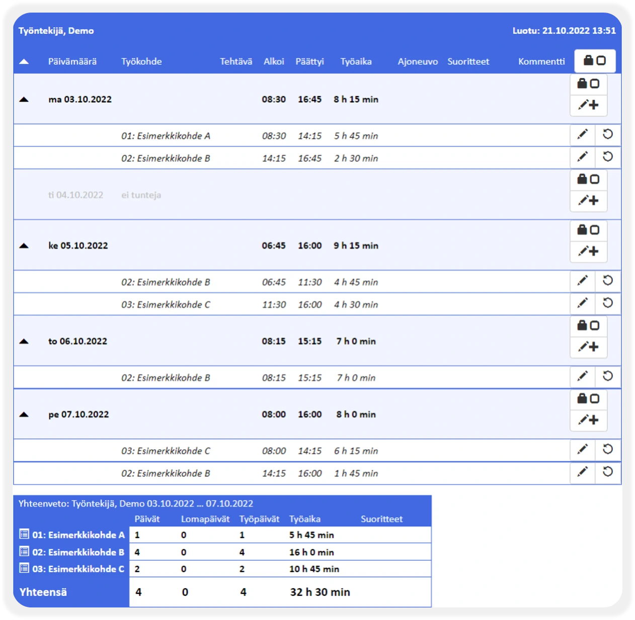Työntekijän tuntiraportti